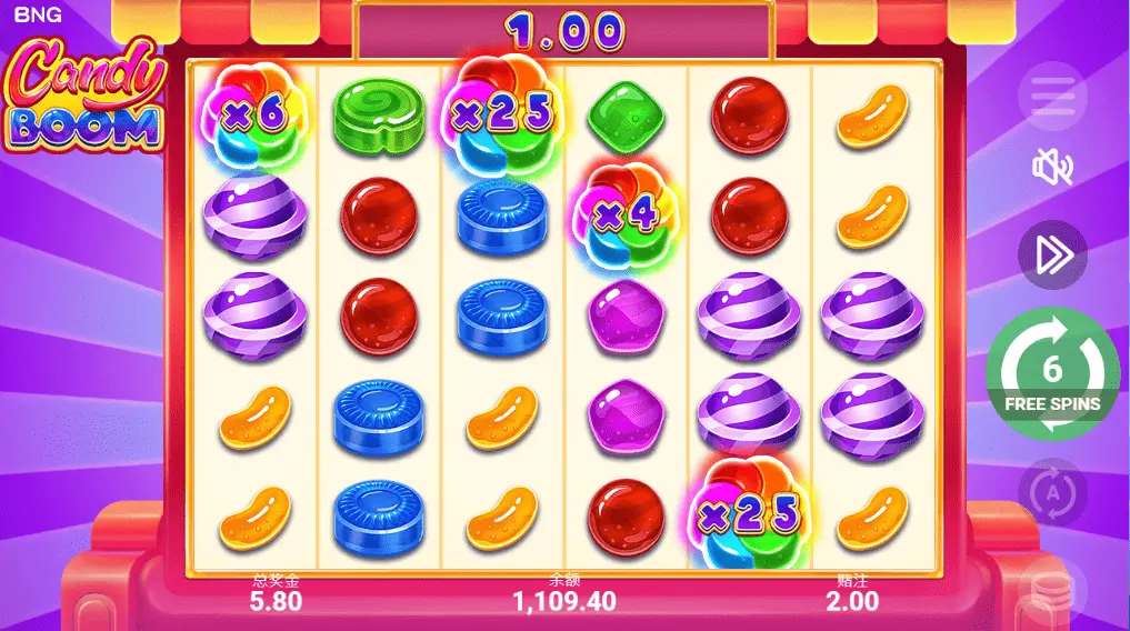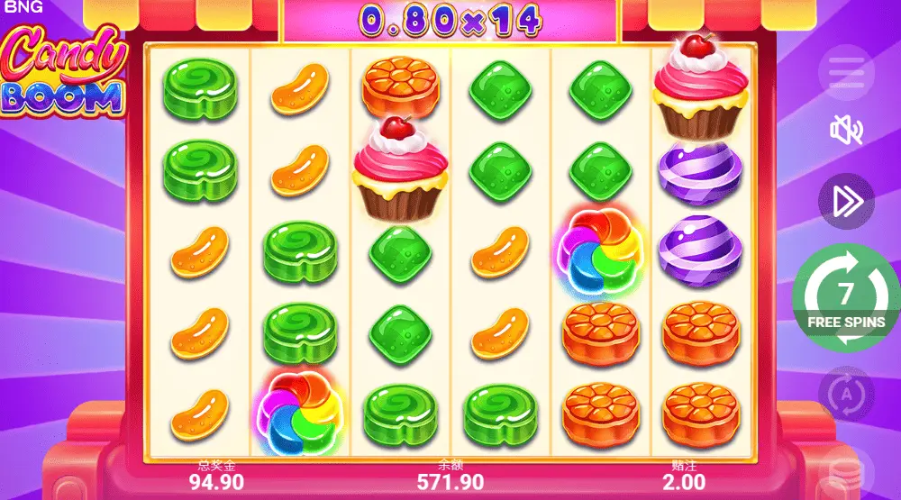 轟炸糖果是參考candy crush的一款充滿童趣的老虎機遊戲,以各種五顏六色的糖果作為遊戲背景,讓你彷彿進入了糖果屋中擁有享用不完的糖果!遊戲除了一般糖果符號連線中獎之外還會隨機出現可以觸發免費遊戲特色的杯子蛋糕,此時贏分將乘上更多的倍數,讓你不只是吃飽喝足還能享受爆分的快感!如果你也喜歡玩candy crush或是喜歡吃糖果的話絕對不能錯過轟炸糖果這款老戶虎機遊戲!