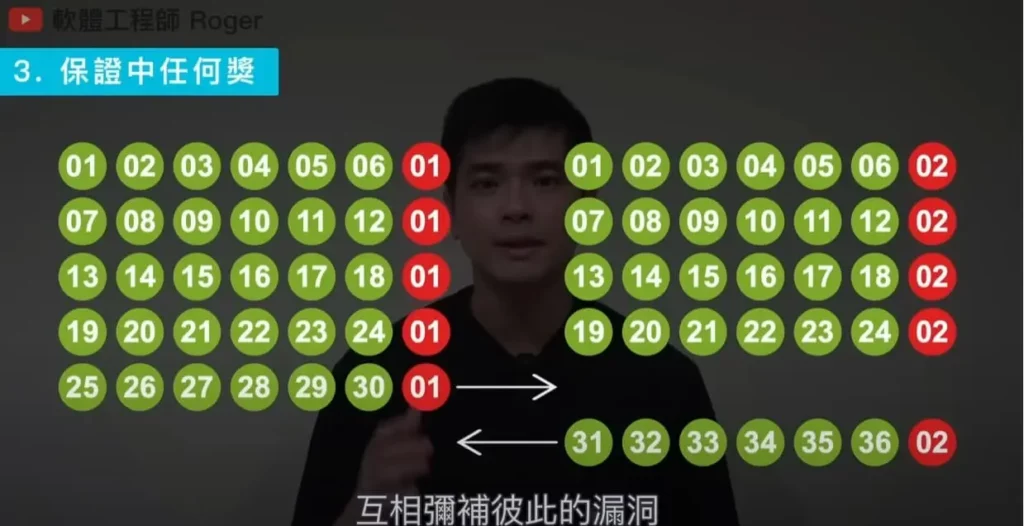 .第一區總共38個號碼,你不一定要把所有的號碼都買到。比如說你在第一區買到的號碼,不要全部都買一遍,且第二區的號碼也不要全部各買一遍,找出數字之間可以互相彌補的漏洞,像是: